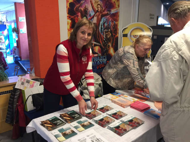 V rámci Mezinárodního dne seniorů, který se na celém světě připomíná 1. října, se v pondělí 2. října 2017 v třineckém kině Kosmos konalo bezplatné promítání nového českého filmu „Miluji tě modře“.
