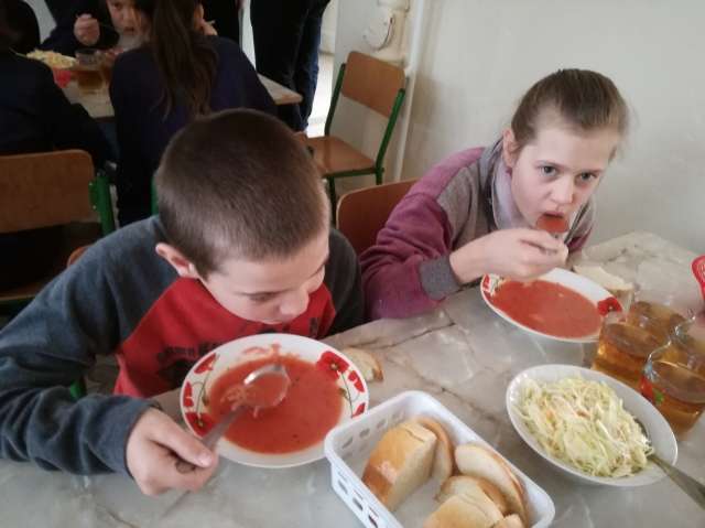 Mnohé děti chodí do školy často hladové a doba do oběda je pro ně dlouhá. Proto se škola rozhodla z dané ceny 25Kč za oběd péct pro tyto děti housky, které dostávají spolu s čajem hned ráno, když přijdou do školy. Děti se tak lépe soustředí a dobu do oběda lépe zvládají.