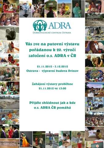 Výstava je složená z fotografií, které zachycují klíčové události dvacetiletého působení české pobočky organizace ADRA – od dopravy materiální pomoci do zemí bývalé Jugoslávie v čase občanské války, přes pomoc obklíčenému Sarajevu, stavba domů pro uprchlíky v bosenském Tešanj, humanitární pomoc Mongolsku postiženému zimou, dovoz potravin pro lidi v obklíčeném Grozném, povodně v ČR v roce 1997 a 2002, otevření azylového domu v Novém Jičíně, zemětřesení v Turecku v roce 1999, rozsáhlou pomoc po tsunami v Asii v roce 2004/05. Dále mapuje založení prvního dobrovolnického centra v ČR, počátky zdravotnického zařízení v Itibu v Keni, zemětřesení na Haiti a v Japonsku atd.