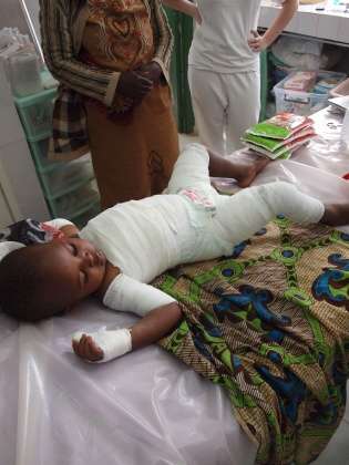 dítě zvládlo. Nehoda se stala v pátek, tedy před 4 dny, a ona s ním šla někam, kde mu na to dali cosi co připomínalo pudr. Takže se na popálených plochách vytvořila jakoby kaše se zbytky tkání a sekretu. Dítě jsme postupně, přesně podle pravidel, ošetřovali a zřejmě bylo už tak vyčerpané z bolesti, že ani moc neplakalo. Náš tým provedl skvělé ošetření, na cestu dostalo dětský Paracetamol sirup, který zároveň tlumí bolet a asi po 2 hodinách si ho babička odnášela domů. Budeme doufat, že na převaz druhý den přijde. Dítě tady nechtěla nechat na hospitalizaci. Paradoxem je, že u nás (v ČR), dítě s takovým rozsahem popálení, by z místa úrazu odjíždělo rychlou záchrannou službou do nemocnice na infuzích, pak by po akutním ošetření v nemocnici za přítomnosti ARO specialisty bylo uvedeno do umělého spánku (v rámci prevence šokového stavu z bolesti) a vrtulníkem transportováno do popáleninového centra. Zde (v Africe) dostane někde ve zdravotnickém zařízení pudr a jde domů. Ještě, že jsme před pár týdny dovezli lodní kontejner zdravotnických potřeb a materiálu, který pochází ze sbírek autolékárniček. Tím můžeme dělat i tak náročná ošetření s velkou spotřebou materiálu. Vždy, při takto rozsáhlém ošetření, v duchu děkujeme za tuto skvělou akci Adry, která sbírku autolékárniček uspořádala. No, budeme zvědavi, zda dítě ještě uvidíme na převaze. Pokud ano, budeme vás informovat o jeho léčení…